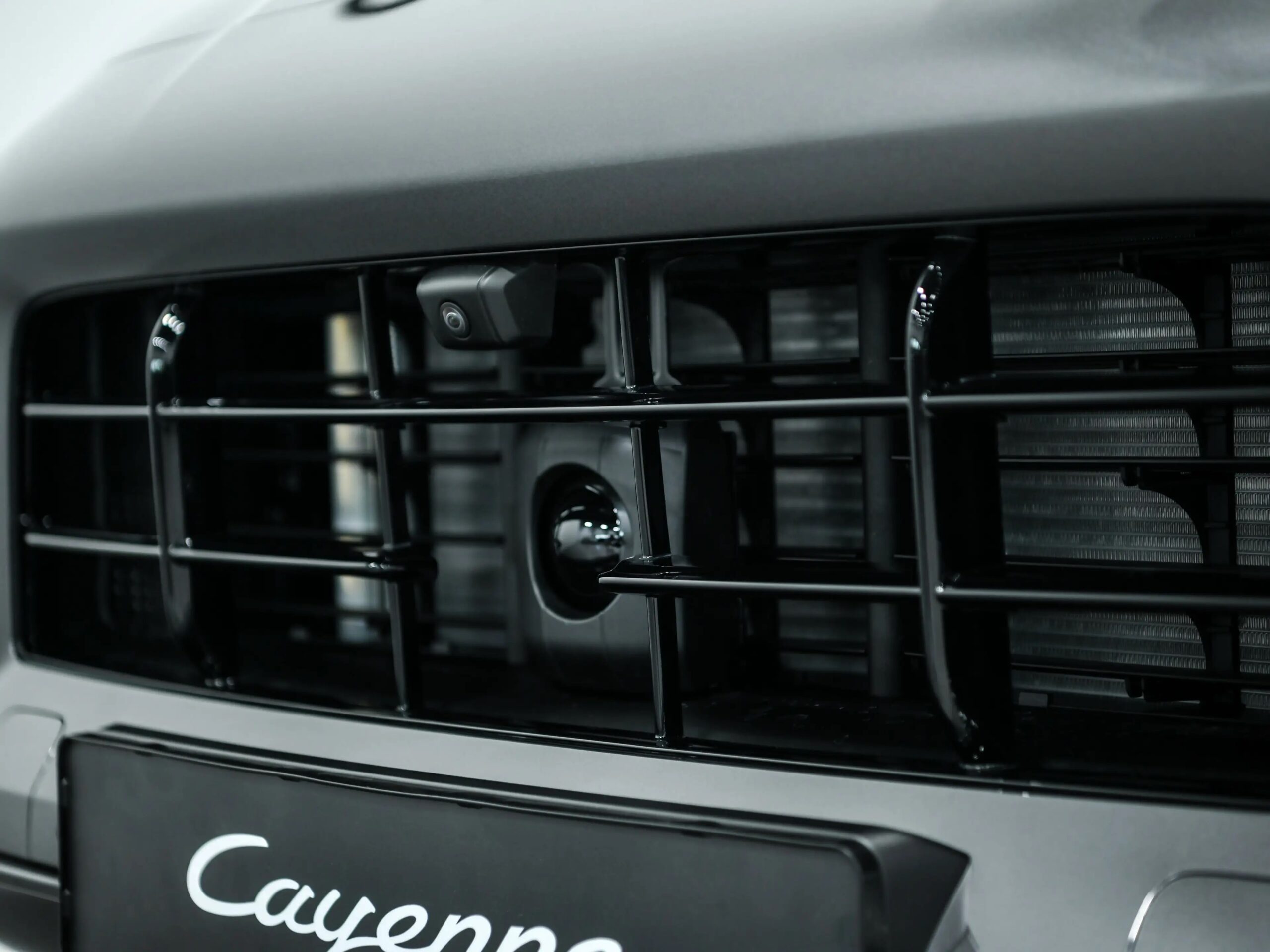 ![]() Logotipo PORSCHE pintado en negro mate, designación de modelo decadente